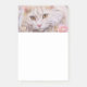 Sticky notes with a lovely illustration. A long haired white cat looking regal and elegant. Surrounded by pink flowers, gold and diamond jewellery.