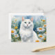 Elegant White Cat Watercolor with Daisies Flowers Postcard