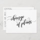 This versatile card allows you to choose your background colour (if you even want a change!) while enjoying this gorgeous font. The front reads "change of plans" using a pretty script with swirls and waves. The back includes template placeholders for your details with matching accent words featuring the calligraphy font. Use these template fields to add your personal details and change my draught wording to suit your needs and situation. // 99 //