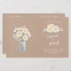 The simplicity of a bouquet of white daisies in a mason jar, aided by the white script font, creates an elegant yet minimalistic wedding design. Kraft paper adds a charming rustic backdrop. The text is fully editable.