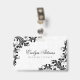 Elegant White Damask & Black Lace ID Badge