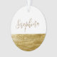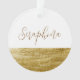 Add a touch of timeless elegance to your holiday décor with our white & faux gold leaf ornament, thoughtfully designed for those who appreciate minimalism with a luxe twist. This sophisticated ornament features a clean white top, beautifully contrasted by a faux gold leaf "lip" effect along the bottom, creating a graceful and modern silhouette. Your name is prominently displayed on the front in stylish, refined script lettering — making it a perfect personalised keepsake or a heartfelt gift. On the reverse side, a full faux gold background sets the stage for a bold monogram, adding a classic and regal touch to the overall design. Whether you're decorating your own tree or gifting to someone special, this ornament offers a stunning blend of simplicity, warmth, and personalisation.