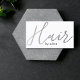 Elegant customisable business card template with white background and FAUX silver bold hair text.