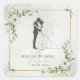 Elegant White Floral Bride and Groom Wedding Square Sticker