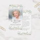 Keep the memory of a loved one close with this custom personalized prayer card featuring one cherished photo, the sentiment IN LOVING MEMORY, name and dates and an editable heartfelt remembrance message you can change to a meaningful poem, quote or bible verse and soft watercolor white flowers and greenery. It makes a meaningful keepsake to share at a funeral, memorial service, visitation, wake or Celebration of Life and offers comfort and a lasting tribute for family and friends. Its small and portable size of 3.5x2" (wallet-sized) makes it convenient for loved ones to carry it with them as a reminder of your loved one’s life and spirit. Personalization makes each card unique.