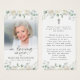 Keep the memory of a loved one close with this custom personalized prayer card featuring one cherished photo, the sentiment FOREVER IN OUR HEARTS, name and dates and an editable prayer you can change to a meaningful custom message, poem, quote or bible verse accented with a simple cross and soft watercolor white flowers and greenery. It makes a meaningful keepsake to share at a funeral, memorial service, visitation, wake or Celebration of Life and offers comfort and a lasting tribute for family and friends. Its small and portable size of 3.5x2" (wallet-sized) makes it convenient for loved ones to carry it with them as a reminder of your loved one’s life and spirit. Personalization makes each card unique.