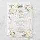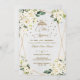 Elegant card design featuring gorgeous watercolour white, cream, ivory flowers bouquets, a faux gold polygonal frame, floral divider, faux gold confetti, beautiful handwriting script, on the back white floral wreath and name; all on watercolor paper background. Use Personalise tool to add your info. See, also, my Quinceañera & Sweet Sixteen Party Collection.