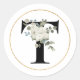 Elegant White Floral Monogram Letter T on White Classic Round Sticker