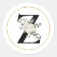Elegant White Floral Monogram Letter Z on White Classic Round Sticker
