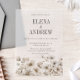 Set the tone for your special day with this sophisticated wedding invitation featuring a delicate vellum overlay. The translucent layer is adorned with elegant white florals, adding a touch of romance and timeless beauty. For a personal touch, include a cherished photo of the happy couple in the back of the overlay—only the vellum overlay will be included, creating a stunning layered effect.
