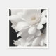 Paper party napkins with a beautiful, elegant design of white flowers against a black background.