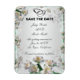 Pretty with white flowers and silver wedding rings. This beautiful save the date magnet is a stylish, long lasting way to announce your big day. Personalise the magnet by changing the text in the fields provided. You can change font style, size, and colour.