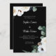 Overall, our elegant wedding invitation in black with white floral bouquets is a stunning and memorable choice that will set the tone for a beautiful and romantic wedding day.