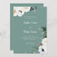 Overall, our elegant wedding invitation in green with white floral bouquets is a stunning and memorable choice that will set the tone for a beautiful and romantic wedding day, infused with the beauty of nature.