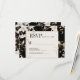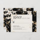 Elegant black and white wedding RSVP card depicts a beautiful romantic floral design with simple white flowers on a black background.. It features accepts, declines and number attending.