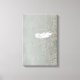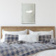 Art features a beautiful snow white feather gently nestled in the beige plants above the light blue lake water. Original art by Featherfall Studio.