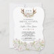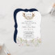 Elegant White Flowers Antlers Navy Bridal Shower Invitation