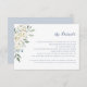 Elegant White Flowers Dusty Blue Wedding Details Insert Card. Watercolor Dusty Blue Wedding Crest. Romantic Wedding Details Invitation Card