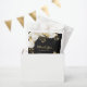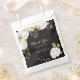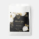 Elegant white flowers with some romantic gold leaves on black background wedding favour bag