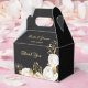 Elegant white flowers with some romantic gold leaves on black background favour box