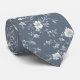 Elegant white flowers on blue neck tie