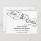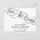 A formal, elegant white save the date postcard featuring with black calligraphy script.
