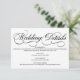 A formal, elegant white wedding details card with black calligraphy script.