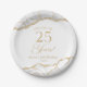 Elegant White Gold Agate 25th Birthday Party Paper Plate