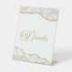 Elegant White Gold Agate Party Drinks Pedestal Sign