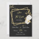 elegant romantic white flowers and gold leaves on gold rectangles black save the date invitation