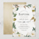 Elegant White Gold Flowers Boy or Girl Baptism Invitation