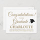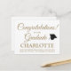 Fully customisable faux gold text, white solid plain background. With one graduation cap topper.