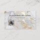 Elegant White Gold Marble QR Code Scissor Modern Business Card
