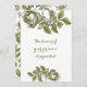 Elegant custom wedding invitations with faux gold script and block letters and a vintage etching of roses in white and golds, restored from an antique manuscript.