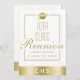 Send your 10th class reunion classmates our modern flat card invitation. This elegant design template features a white and shiny gold border background with faux gold typography that reads "10th Class Reunion" with your school name and year to personalise Below is your school's monogram. The back of the card has more of your celebration details for you to customise. Designed by ©Tim Coffey and