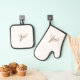 Elegant White Gold Script Monogram Oven Mitt & Pot Holder Set