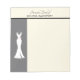 Notepad made with a classy grey background. A graphic illustration of an elegant white gown hanging on a hanger. Simple minimalist design.