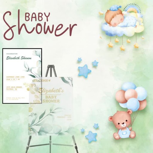 Elegant White & Green Baby Shower InvitationDesigned by RIDOUAN EL OTMANI