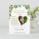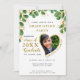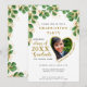 Create a unique photo graduation invitation for the class of 2025 graduate designed in white, emerald green and gold colours decorated with eucalyptus greenery. Templates make it easy to personalise the invites with your data and upload a photo. Name and Family Name should be changed separately to have this stylish curved view. Please use the template to upload your photo to have the same heart-shaped image of the graduate. Try a few photos to choose which one suits best for a heart-shaped image.