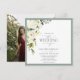 Elegant White Grey Green Floral Watercolor Photo Invitation