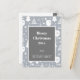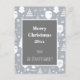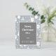 Elegant white & grey Merry Christmas horizontal Christmas postcard . White pickleball paddles, pickleballs and a lot white snow flakes on dark grey background.