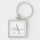 Elegant White & Grey Monogram Key Ring