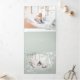 Minimalist and elegant white holly surrounding an oval photo template on pastel green background with dark green"joyful" swirly calligraphy text. Panels feature additional photo templates, optional floral graphic and editable text fields.