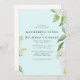 White Hydrangea Wedding Invitation. Modern Typography. One Location. No Parents Listed. Seafoam background.