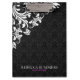 Elegant white floral lace swirls over black floral damasks pattern. For Event designers, wedding planners