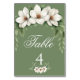 Elegant White Magnolia Winter Wedding Pine Tree Table Number