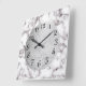 Elegant White Marble and Grey with Silver Square Wall Clock