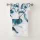 Elegant white marble eucalyptus foliage monogram bath towel set