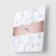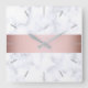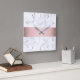 Stylish and modern design featuring faux white marble and faux rose gold strip.