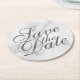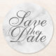 Elegant White Marble Wedding Save the Date Round Paper Coaster